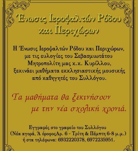 Η πρώτη Σχολή Ψαλτικής στη Ρόδο